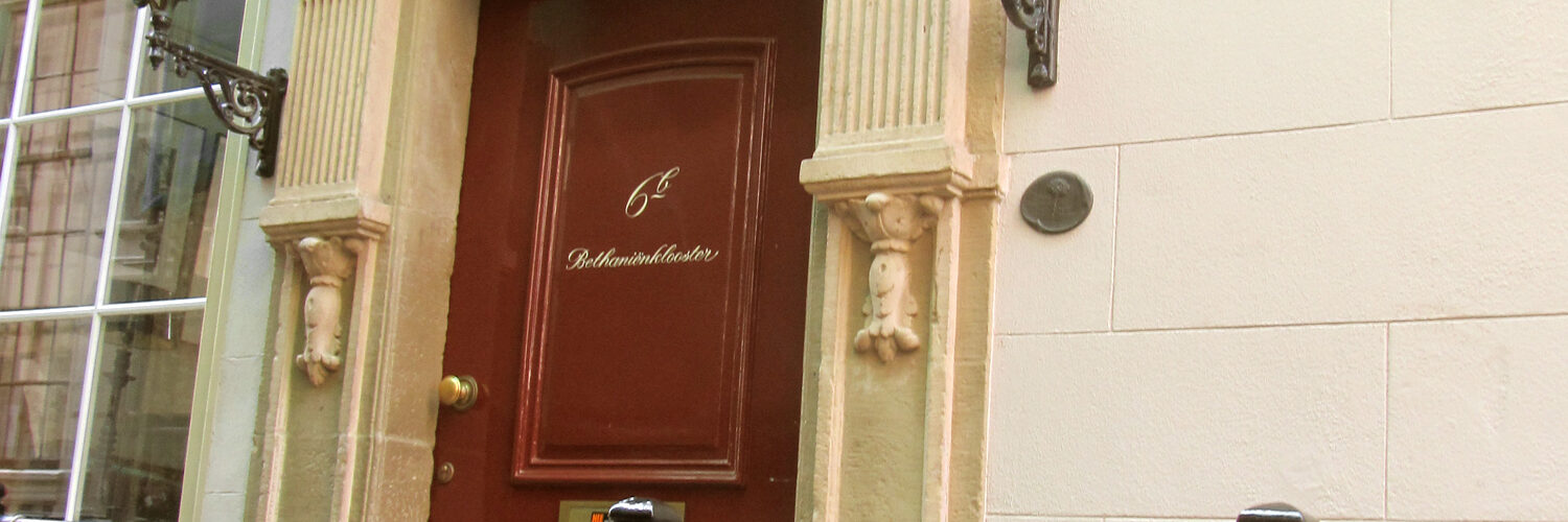 De blinde kloostermuur met de vele muurankers maakte oorspronkelijk deel uit van de noordvleugel van het vrouwenklooster van Sinte Maria Magdalena in Bethaniën. Het complex bestond uit een open binnenterrein met een tuin, een bleekveld en een kerkhof, waaromheen kloostergebouwen stonden opgesteld. In het gebouw aan de kant van de Barndesteeg, het restant dat aan het eind van de jaren ’80 is gerestaureerd, waren vroeger de refter (de eetzaal), de spinkamers en in het hoogste gedeelte de slaapzaal van de zusters gevestigd.