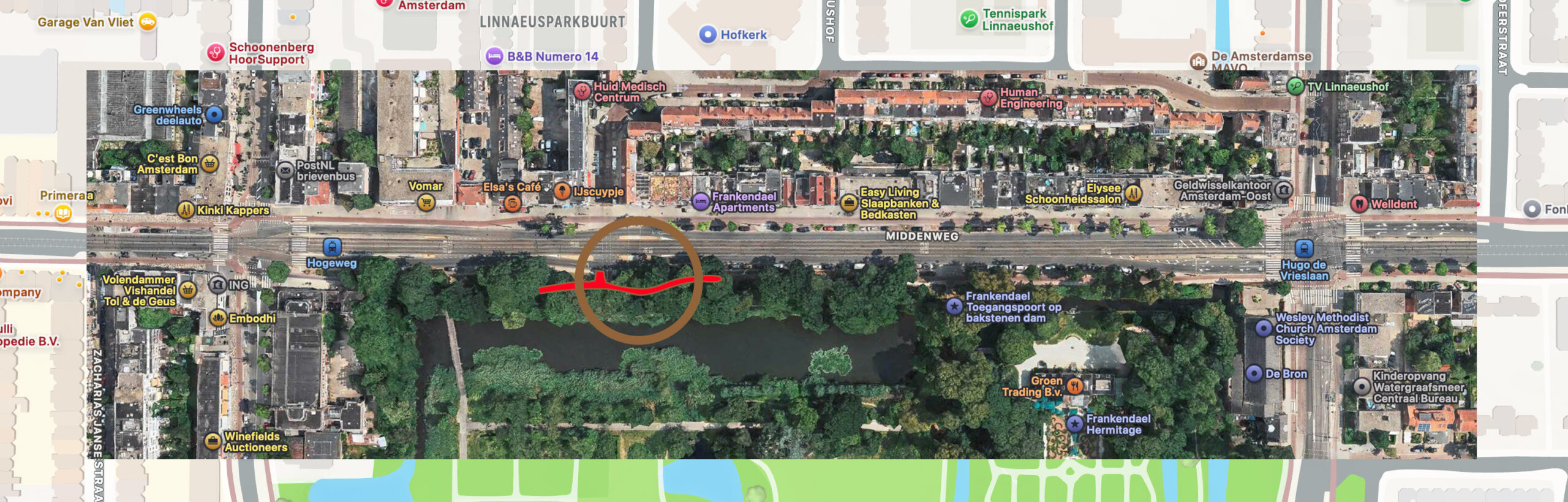 Op de Middenweg in Amsterdam, tegenover café Elsa’s, zit een eigenaardige knik in het fietspad. Dat is een literair monumentje. Want toen dit pad werd aangelegd in 1951 klom Koekebakker alias J.F. Gönloh uit het verhaal ‘Titaantjes’ in de pen. Zijn hele schrijversleven al verzette hij zich imaginair tegen ‘de gewichtige heeren’. Gelijk zijn romanpersonage Koekebakker was hij inmiddels oud en burgerlijk geworden. Zijn jeugd had hij achter een hek in het Oosterpark verloren. Na de oorlog woonde hij met zijn vrouw op het Linnaeushof 18. Toch beleefde hij daar nog één stuiptrekking uit zijn rebelse jeugd. Hij schreef vol verontwaardiging als Dichtertje een brief aan de Hoge Heren van de Gemeente Amsterdam. Hij vond het zonde als de bomen sneuvelden voor het nieuwe pad. De gemeenteambtenaar had kennelijk respijt voor Nescio want het pad werd uiteindelijk met een bocht om de bomen heen gelegd. vlakbij de plek waar de bomen moesten wijken voor een fietspad. Iedereen die nu langs de Middenweg fietst op de hoogte van de Vomar en café Elsa’s is daar nog steeds getuige van.