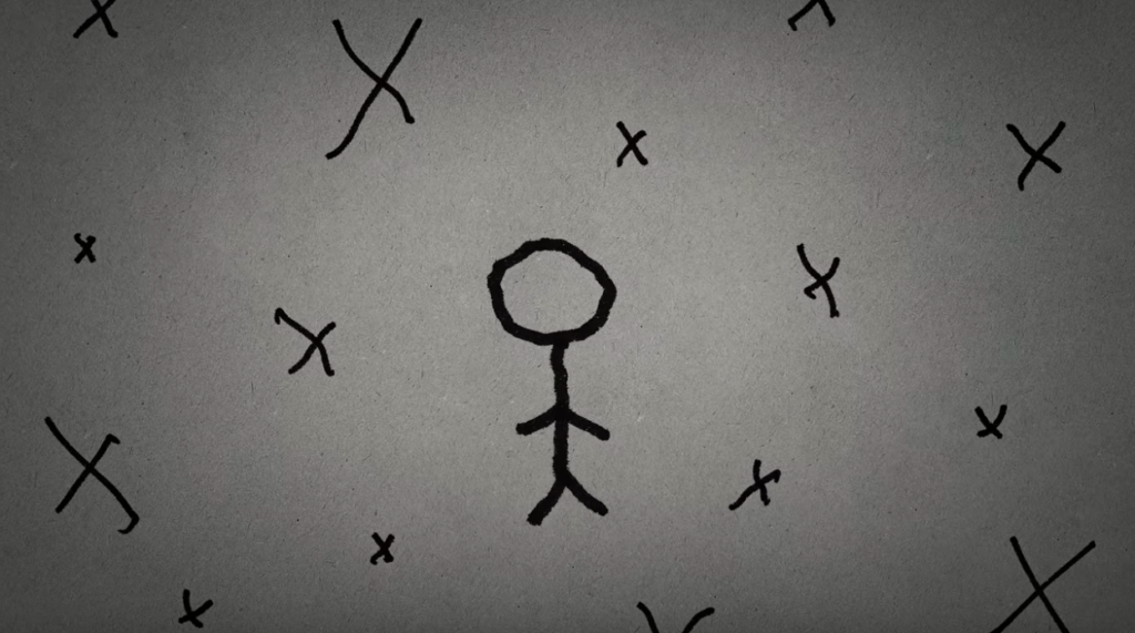 Phil Stutz tekent in de Netflix-documentaire IKEA-achtige instructies die visualiseren hoe een levensvraagstuk of een psychisch obstakel het beste aangepakt kan worden.